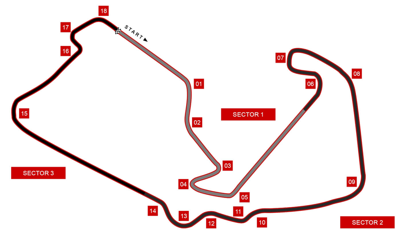 | Top Speed | 250.0 km/h before Turn 1 |